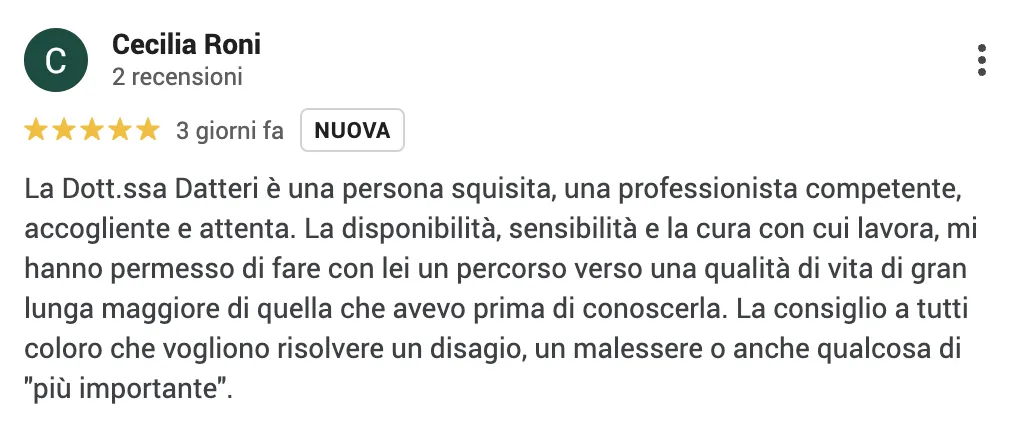 Punti di forza: formazione avanzata, quasi 30 anni di esperienza e approccio personalizzato.